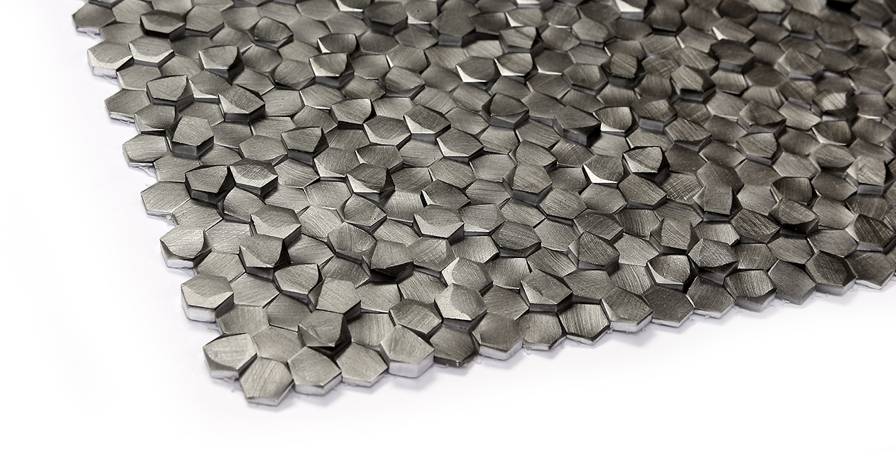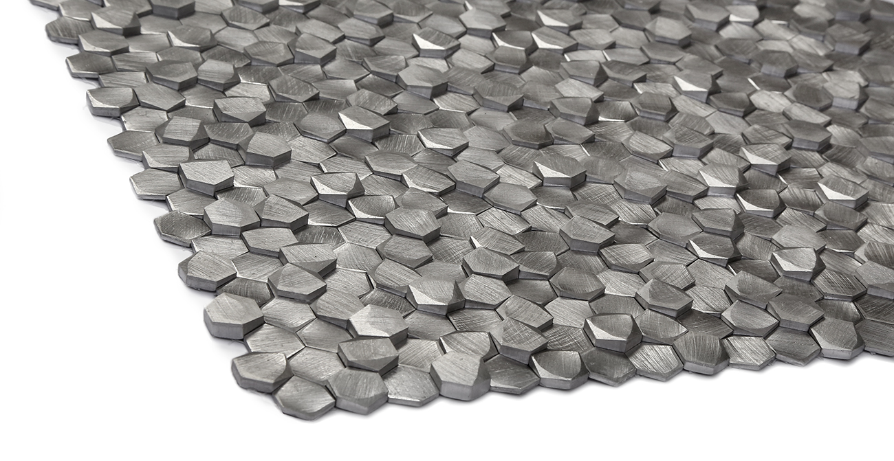 Escalia is a through body aluminum mesh bacled mosaic.